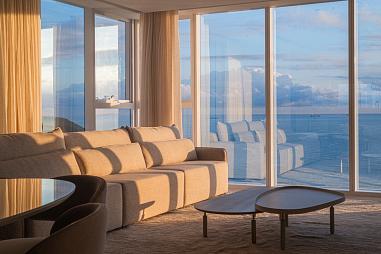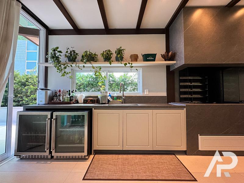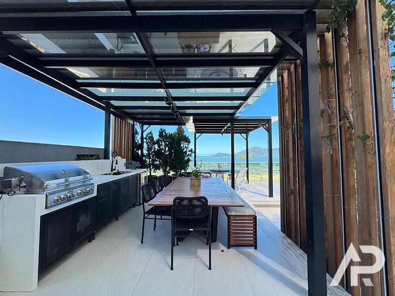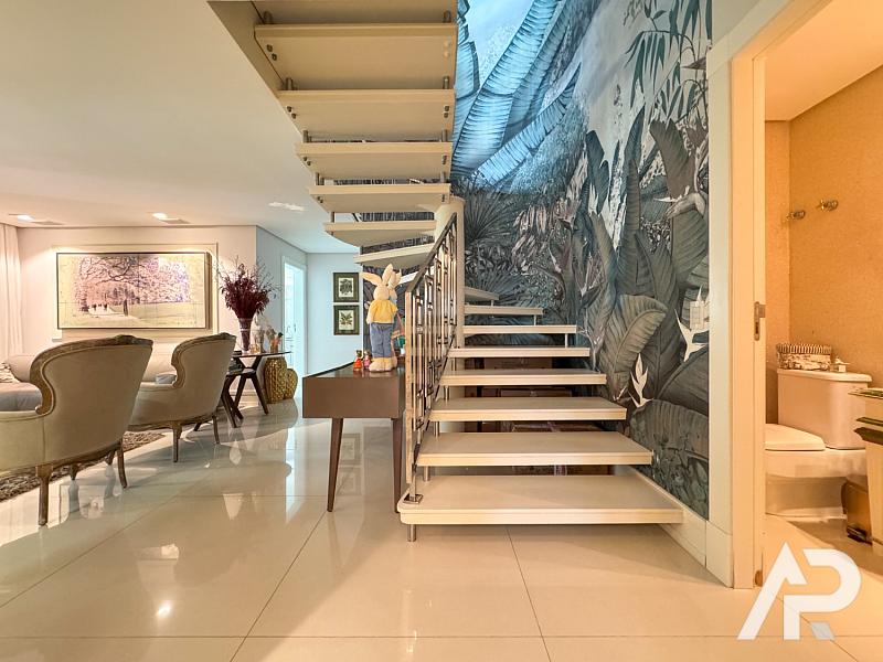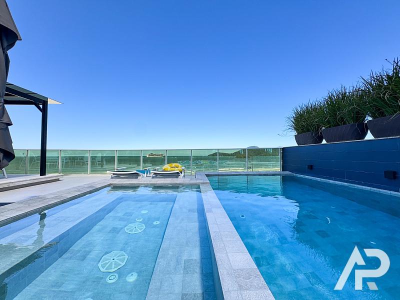 Este apartamento duplex frente mar está localizado no edifício Sea’s Palace na Avenida Atlântica em Balneário Camboriú e possui setecentos e vinte e cinco metros quadrados de área privativa e aproximadamente mil metros quadrados de área total. A unidade conta com cinco suítes, sete vagas de garagem privativas e planta com ambientes integrados que incluem salas de estar, sala de televisão, lareira e churrasqueira gourmet. A estrutura dispõe de piscina privativa e jacuzzi posicionadas de frente para o oceano, proporcionando vista panorâmica e permanente em uma das áreas de maior valorização imobiliária do Brasil.