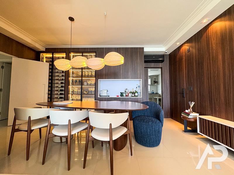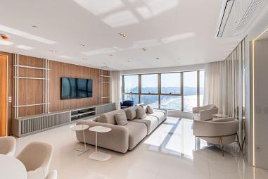 Apresentamos um imóvel de prestígio inigualável no Villa Serena Home Club, o empreendimento que redefiniu o mercado de luxo em Balneário Camboriú. Esta é uma oferta para um seletíssimo grupo de investidores e moradores que buscam o ápice da exclusividade e uma localização inconfundível. Disponível para venda, esta residência está situada no andar mais alto da torre, garantindo uma vista completa, panorâmica e definitiva do oceano e da orla de Balneário Camboriú, livre de qualquer obstáculo visual. Este apartamento é a definição de luxo elevado: localizado em um dos pisos mais altos do edifício, possui 150 m² de área privativa, dimensões generosas e ambientes amplos que superam o padrão da cidade. A configuração é impecável: são 4 dormitórios, sendo 2 suítes plenas e 2 demi-suítes, ideal para famílias que valorizam o conforto e a privacidade. O imóvel está totalmente decorado e mobiliado com requinte, pronto para desfrutar do luxo imediatamente, e ainda oferece 3 excelentes vagas de garagem privativas, um diferencial essencial na Barra Sul. A localização é prime: a apenas uma quadra do mar, estrategicamente posicionado entre o coração do Centro e a charmosa Barra Sul de Balneário Camboriú.